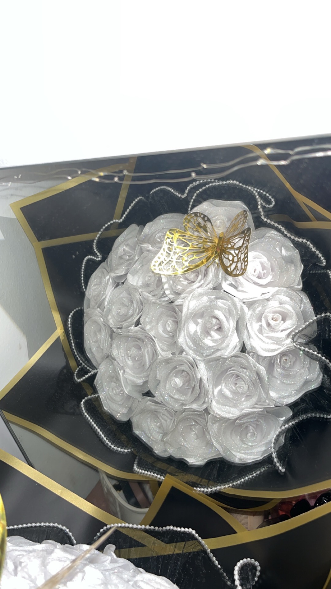 En hel vit bukett med 20rosor och glitter!